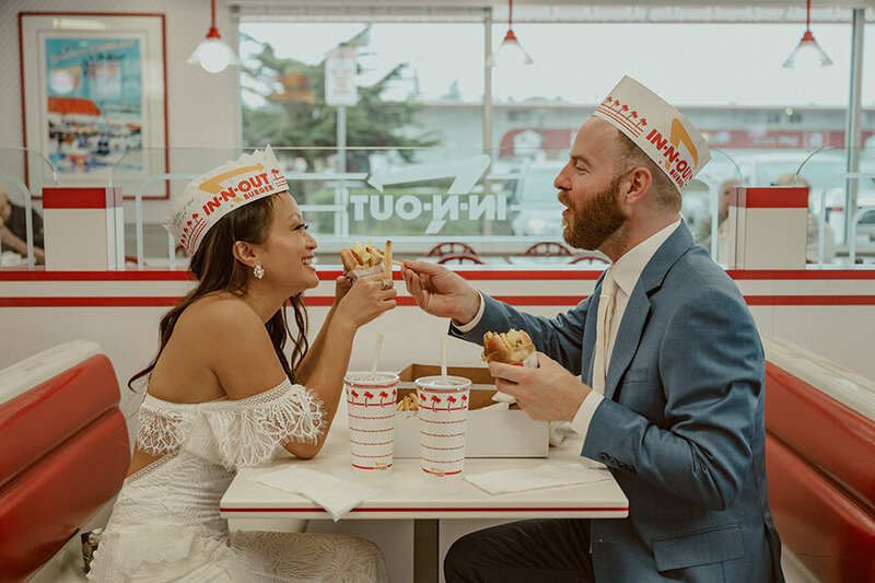 A typical elopement day would start with sharing a cup of coffee together, getting ready and a first look at your lodging, driving to our first location to get some stunning photos, after that we usually plan some fun activities for you to share, like a picnic lunch, enjoying some cocktails, or cutting a small cake. After our activity we can travel to our last location to exchange vows together while the sun-sets. This general outline can be customized in any way. Elopements give you the freedom to do whatever you want together!